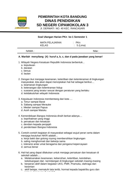 Contoh soal pkn kelas 6 sd/ mi semester 1 dan semester 2 berserta kunci jawaban nya lengkap dan terbaru kurikulum 2013, soal pilihan ganda . Www.sekolahdasar.net latihan soal pkn kelas 6 paket 1. Soal pilihan ganda ppkn kelas 12 bab dinamika persatuan dan kesatuan bangsa dalam konteks negara kesatuan republik indonesia ~ part 2. Apa contoh sikap yang menunjukkan persatuan dan kesatuan dalam kehidupan . Kegiatan berikut yang dapat meningkatkan semangat persatuan dan kesatuan masyarakat adalah.