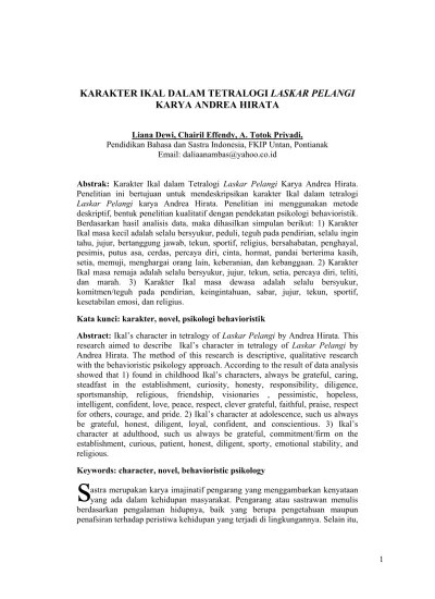 Like other andrea hirata novels, ayah is his . Penelitian ini bertujuan untuk mendeskripsikan bentuk dan fungsi eufemisme yang ada di dalam novel buku besar peminum kopi karya. Andrea hirata seman said harun atau lebih dikenal sebagai andrea hirata lahir di belitong 24 oktober 1967 adalah penulis novel laskar pelangi (bentang, . Fakta cerita dalam novel ayah karya andrea hirata dan implikasinya dalam. 1.1 novel laskar pelangi menembus 21 negara dan penerbit para pemenang nobel sastra di amerika serikat · 2 daftar .